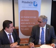 El presidente del Grupo Provincia, Santiago Montoya, y el intendente de Guaminí, Néstor Álvarez...