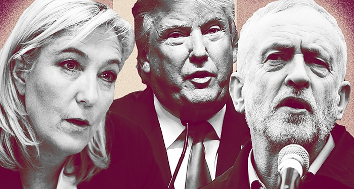El populismo muchas veces hace un paralelo entre las varias formas de la política de identidad, pero agrega un resentimiento furioso en contra de las “élites”, una economía política disparatada y una nostalgia por un líder que puede reunir la verdadera voluntad del pueblo. Los movimientos populistas han florecido en varios países, desde Polonia hasta España, desde las Filipinas hasta EE.UU. Michael Kazin en su libro La persuasión populista (The Populist Persuasion) ofrece una definición del populismo: “un lenguaje cuyos voceros conciben a las personas ordinarias como un ensamblaje noble no limitado de manera obtusa por la clase, perciben a sus opositores élite como interesados y anti-democráticos, y buscan movilizar a los primeros en contra de los segundos”. La tendencia normal de dichos movimientos es seguir a un líder carismático que personifica al pueblo y se concentra en la voluntad popular.