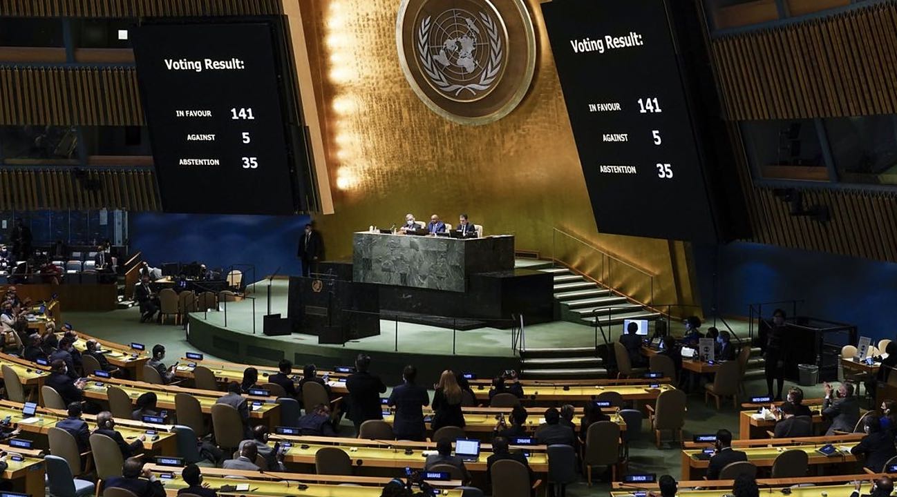 El pasado 2 de marzo de 2022, la Asamblea General de Naciones Unidas aprobó una resolución condenando la invasión rusa de Ucrania, y demandando un retiro inmediato de las fuerzas militares de la Federación.